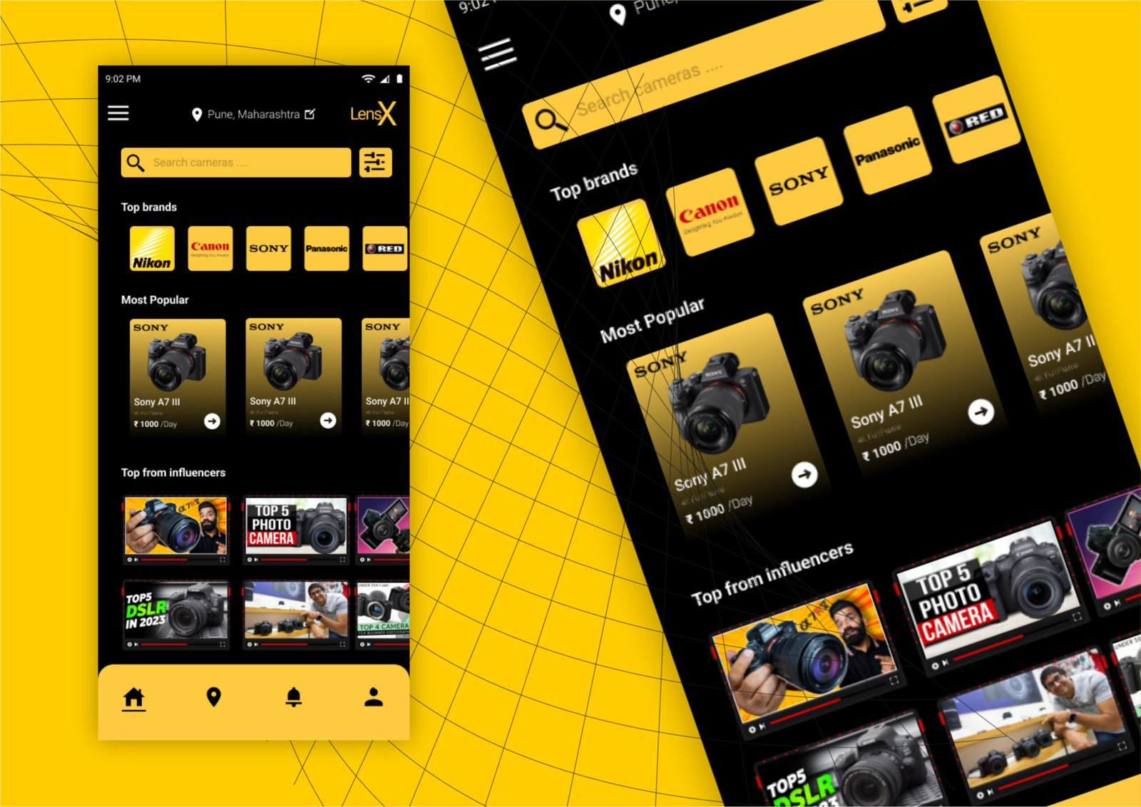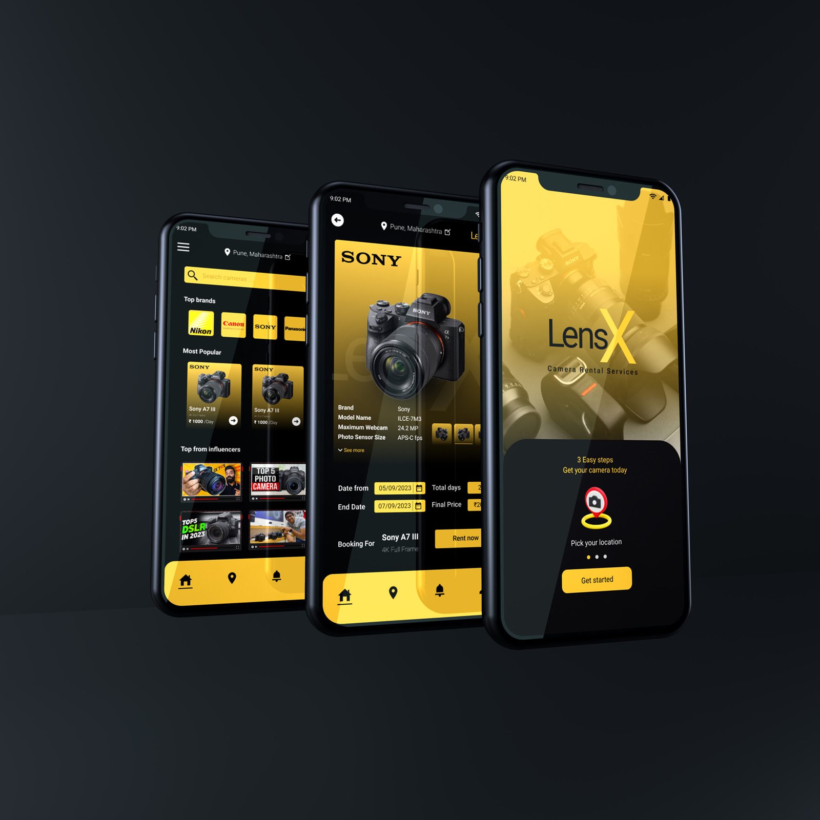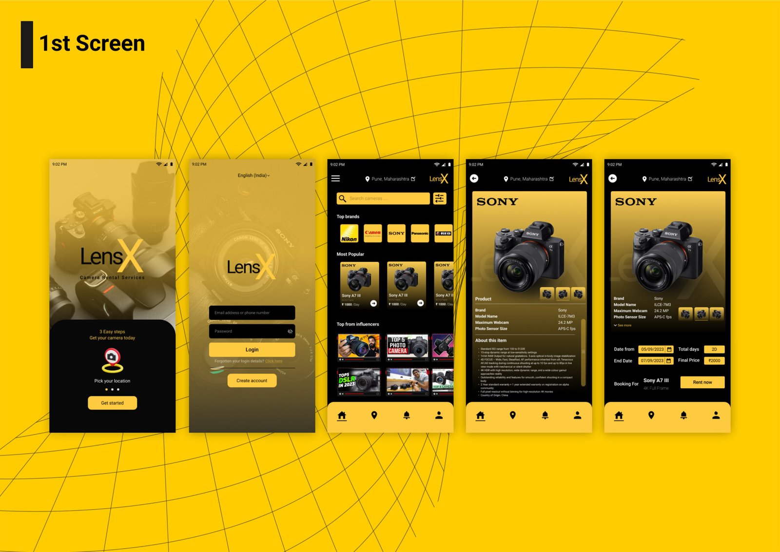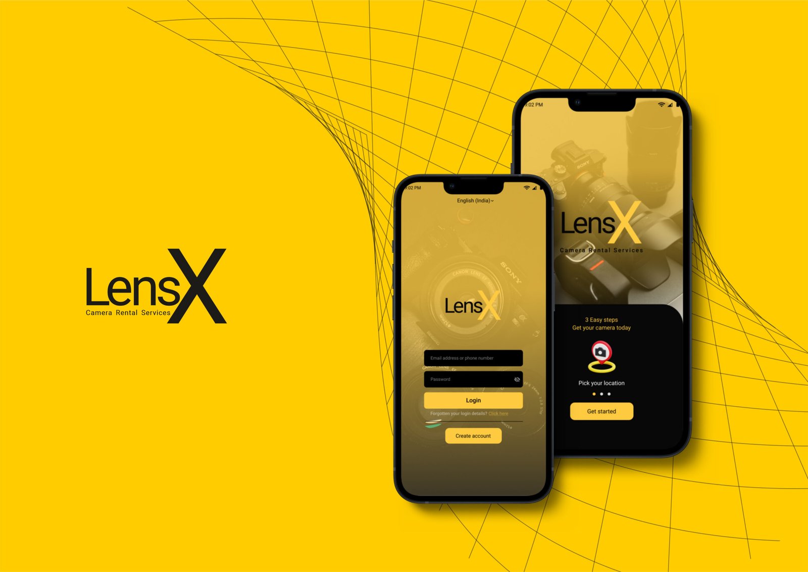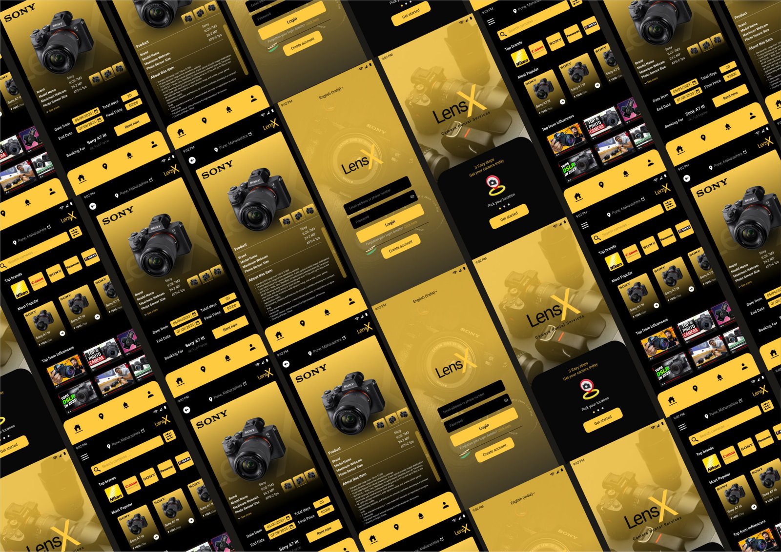 UI/UX Design lensX - Camera rental service App Design